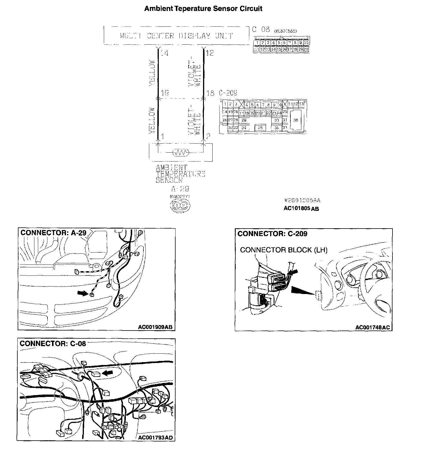 STEP 2. Check the harness wires between ambient temperature sensor connector A-29 and multi-center display connector C-08.