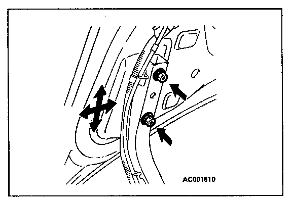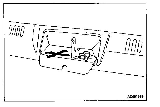 1. If the clearance between the trunk lid and the body is not uniform, loosen the trunk lid mounting bolts and move the trunk lid to adjust so that the clearance around the trunk lid is uniform.