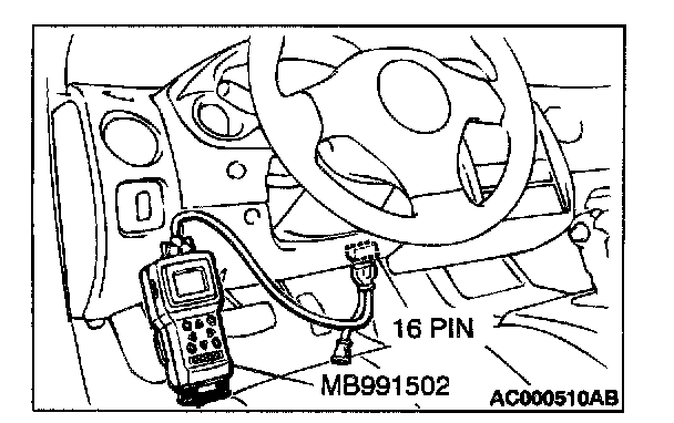 1. Connect scan tool MB991502 to the data link connector terminal (1).