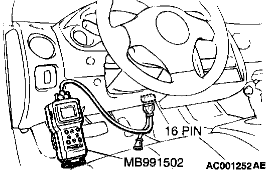 CAUTION: To prevent damage to scan tool MB991502, always turn the ignition switch to the "LOCK" (OFF) position.