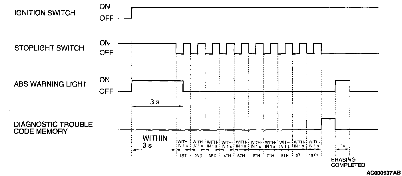 NOTE: If the ABS-ECU functions have stopped due to the fail-safe function, the diagnostic trouble code cannot be erased.