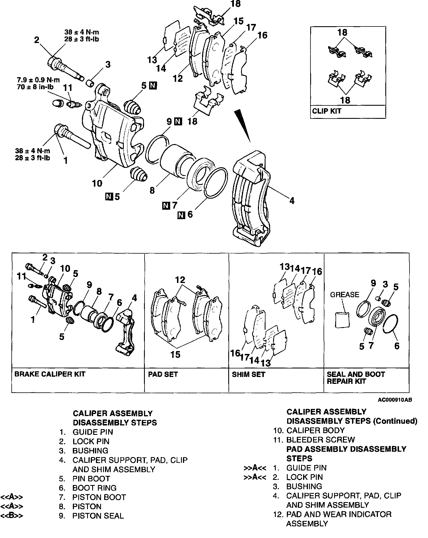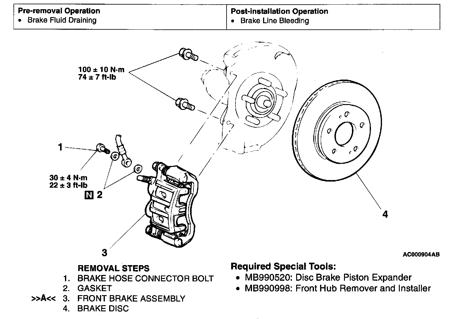1. In order to measure the brake drag torque, measure the hub torque with the pads removed by the following procedure.