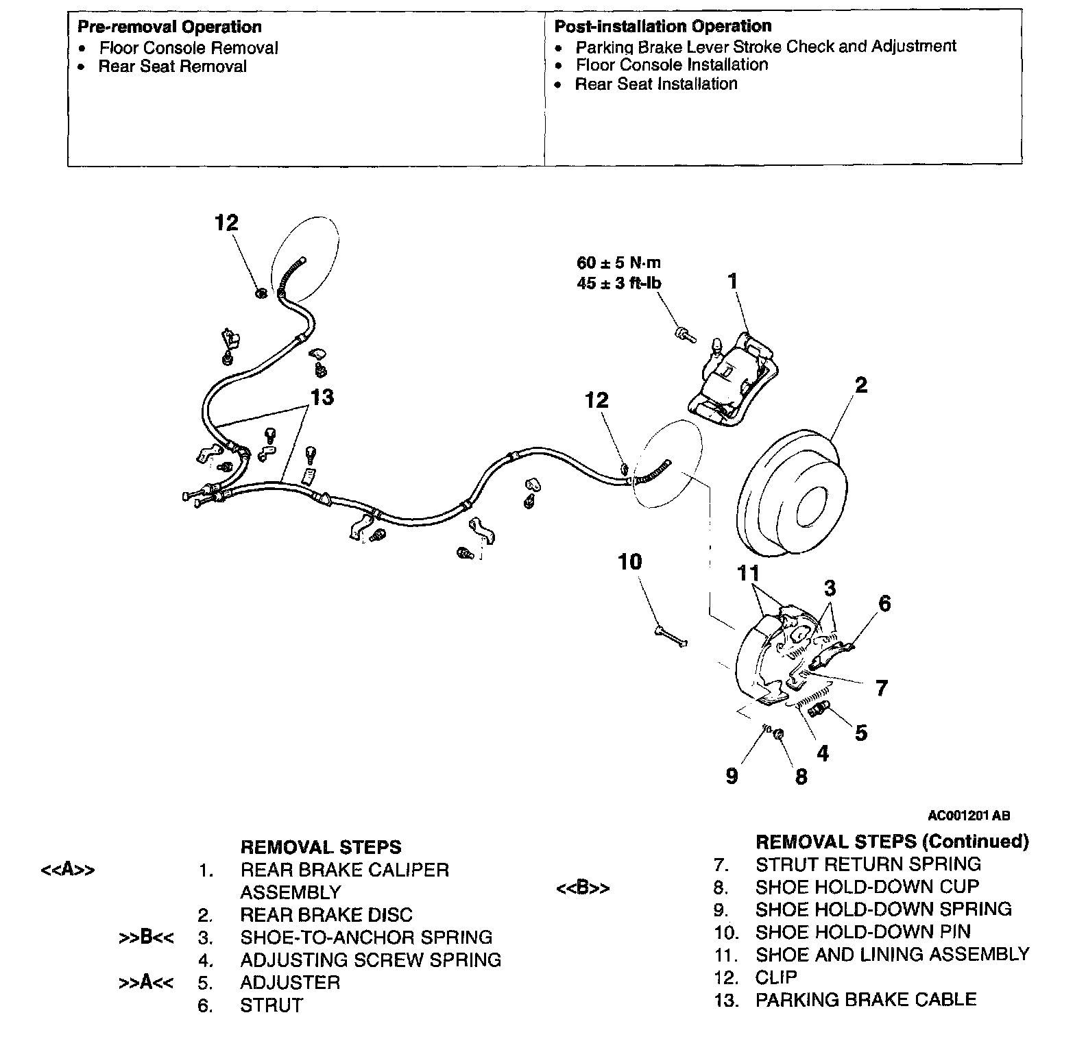 PARKING BRAKE CABLEREMOVAL AND INSTALLATION