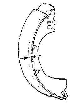 3. Replace the shoe and lining assembly if the brake lining thickness is less than the limit or if it is not worn evenly.