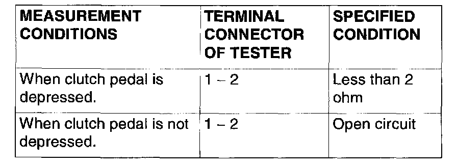 - Voltage should be 0.5 volts or less. (When clutch pedal is depressed.)