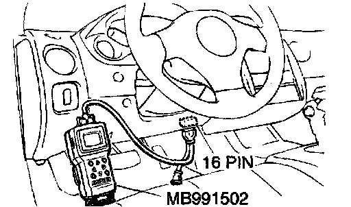 2. Connect scan tool MB991502 to the data link connector.