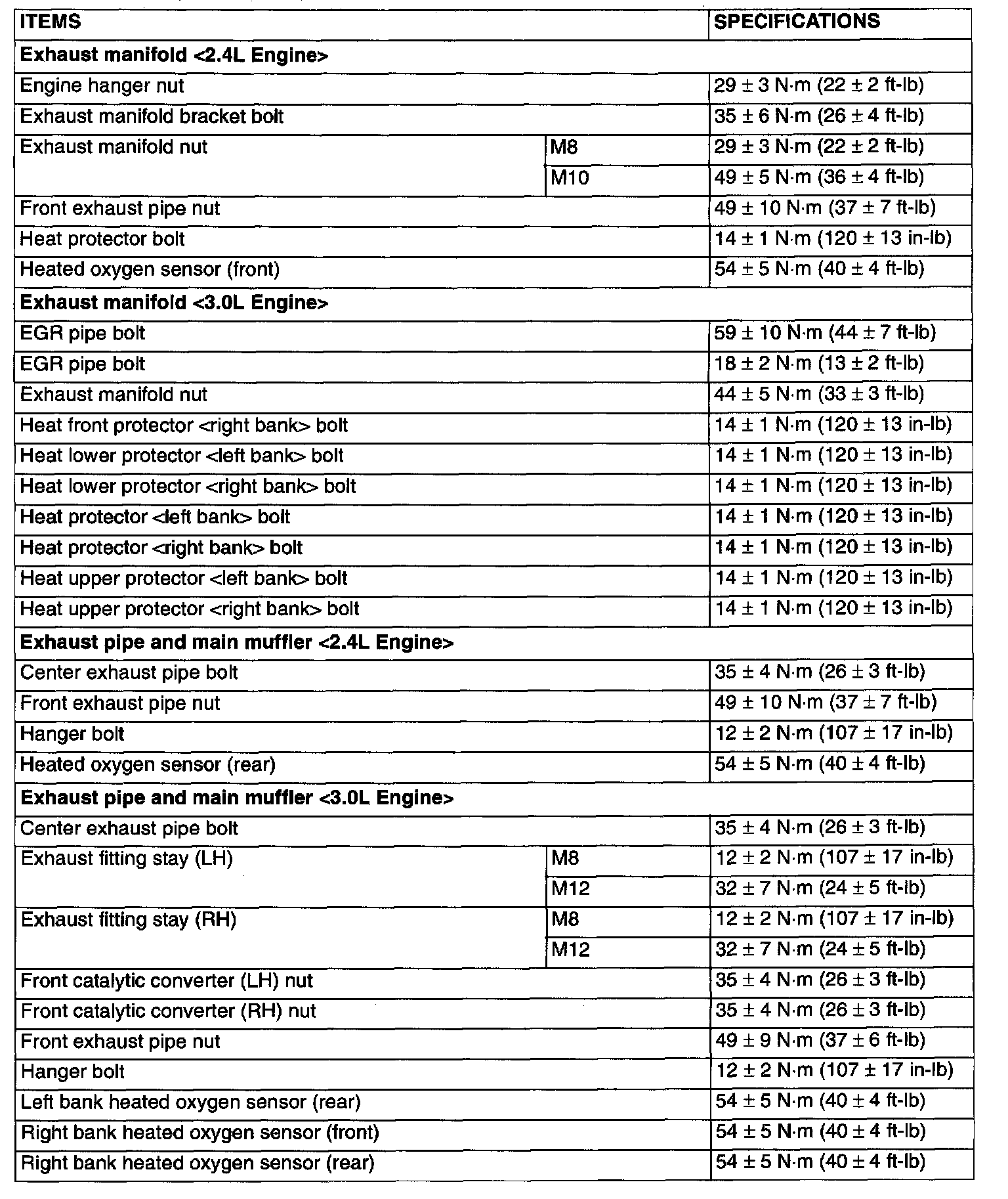 Torque Specifications