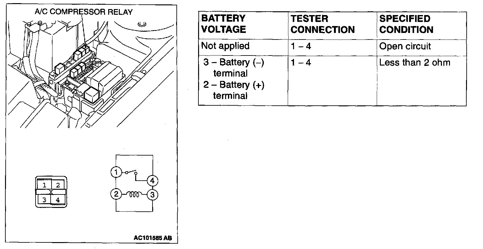 A/C Compressor Relay Continuity Check: