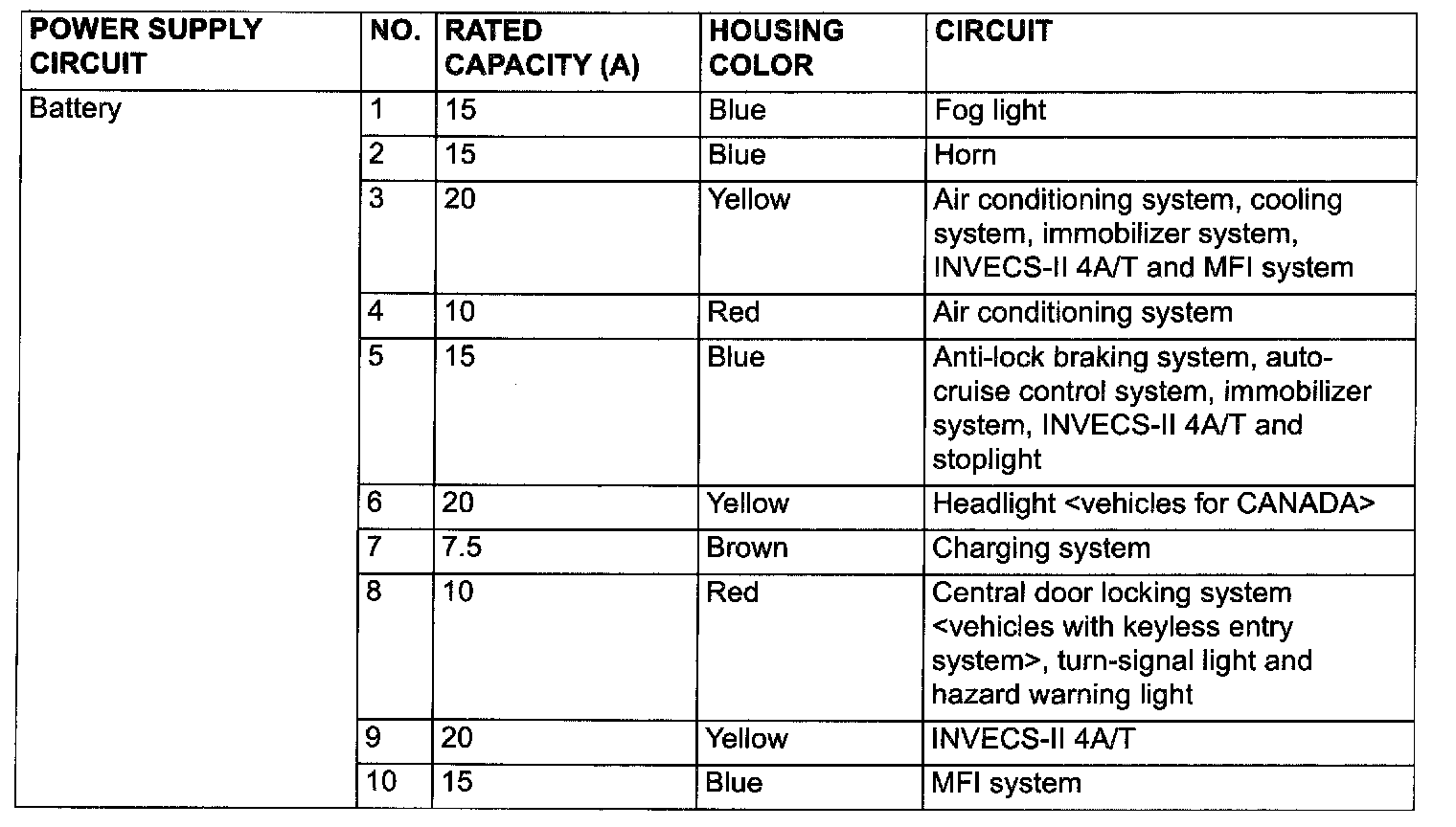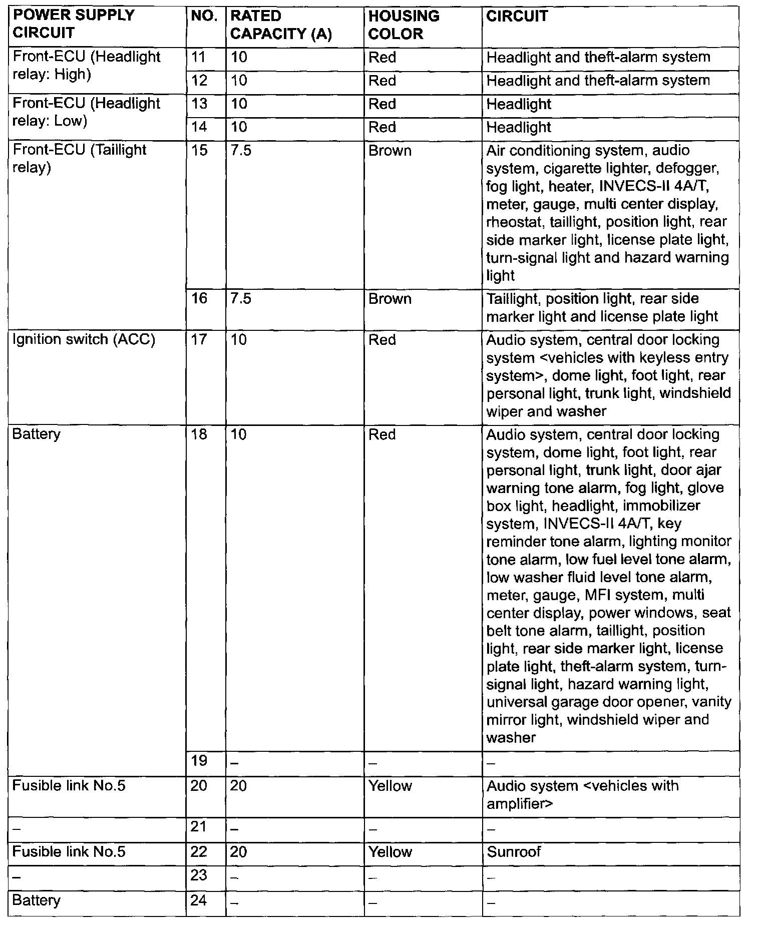 Dedicated Fuses 1 - 19 And 24 (Relay Box In Engine Compartment):