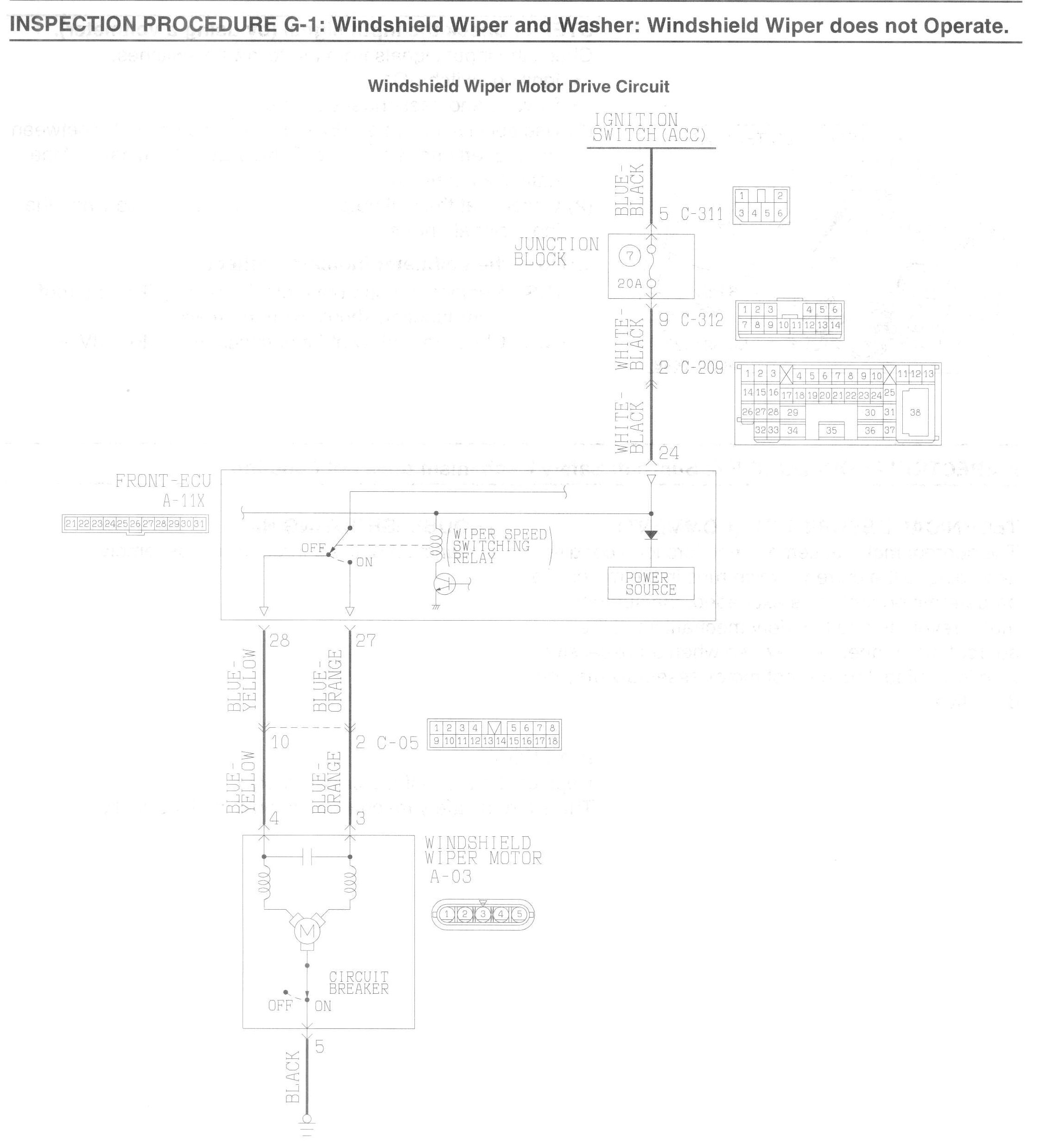 INSPECTION PROCEDURE G-1: Windshield Wiper and Washer: Windshield wiper does not operate.
