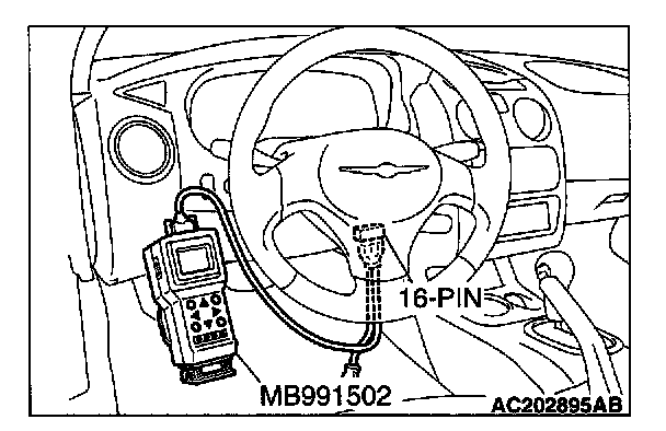 1. Connect scan tool MB991502 to the data link connector.