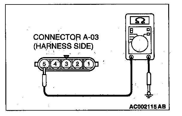 STEP 7. Check the wiring harness between windshield wiper motor connector A-03 (terminal 5) and ground.