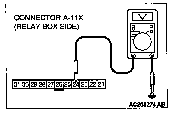 3. Measure the voltage between terminal 24 and ground.