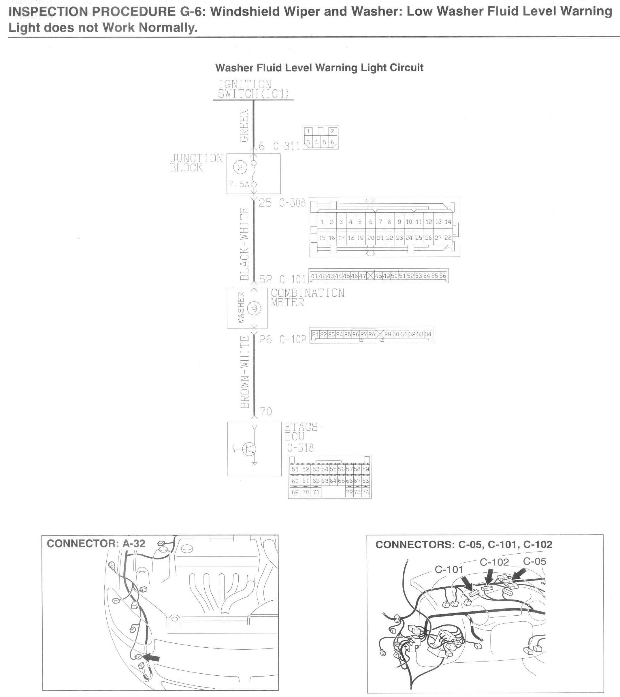 INSPECTION PROCEDURE G-6: Windshield Wiper and Washer: Low washer fluid level warning light does not work normally.