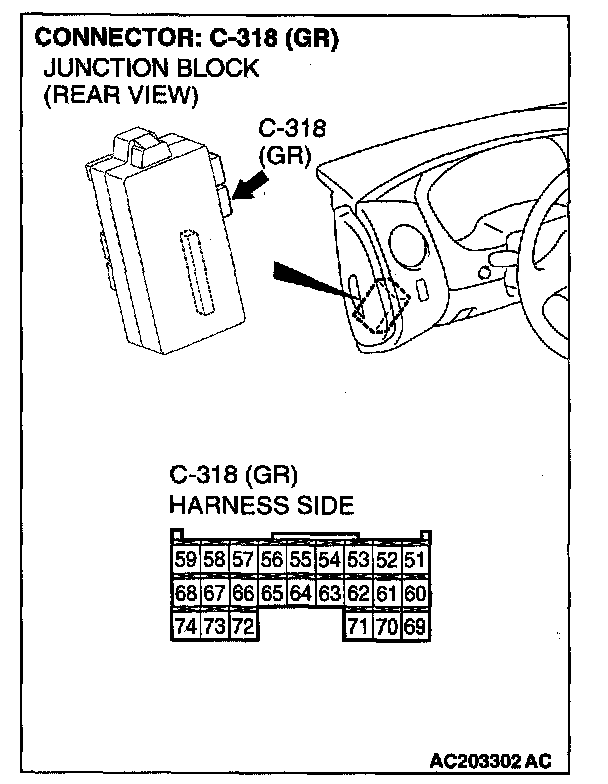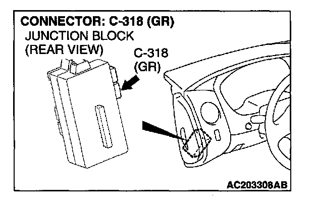 1. Disconnect the ETACS-ECU connector C-318 and measure at the harness side of the connector.