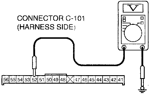 1. Disconnect combination meter connector C-101 and measure the voltage available at the harness side.
