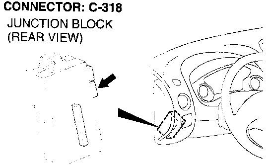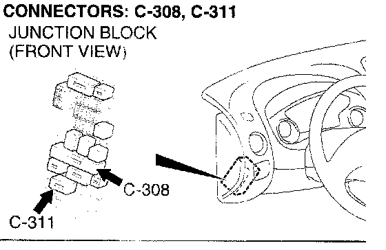 NOTE: Also check junction block connectors C-308 and C-311 for loose, corroded, or damaged terminals, or terminals pushed back in the connector. If junction block connectors C-308 or C-311 are damaged, repair or replace the damaged components) as described in Harness Connector Inspection.