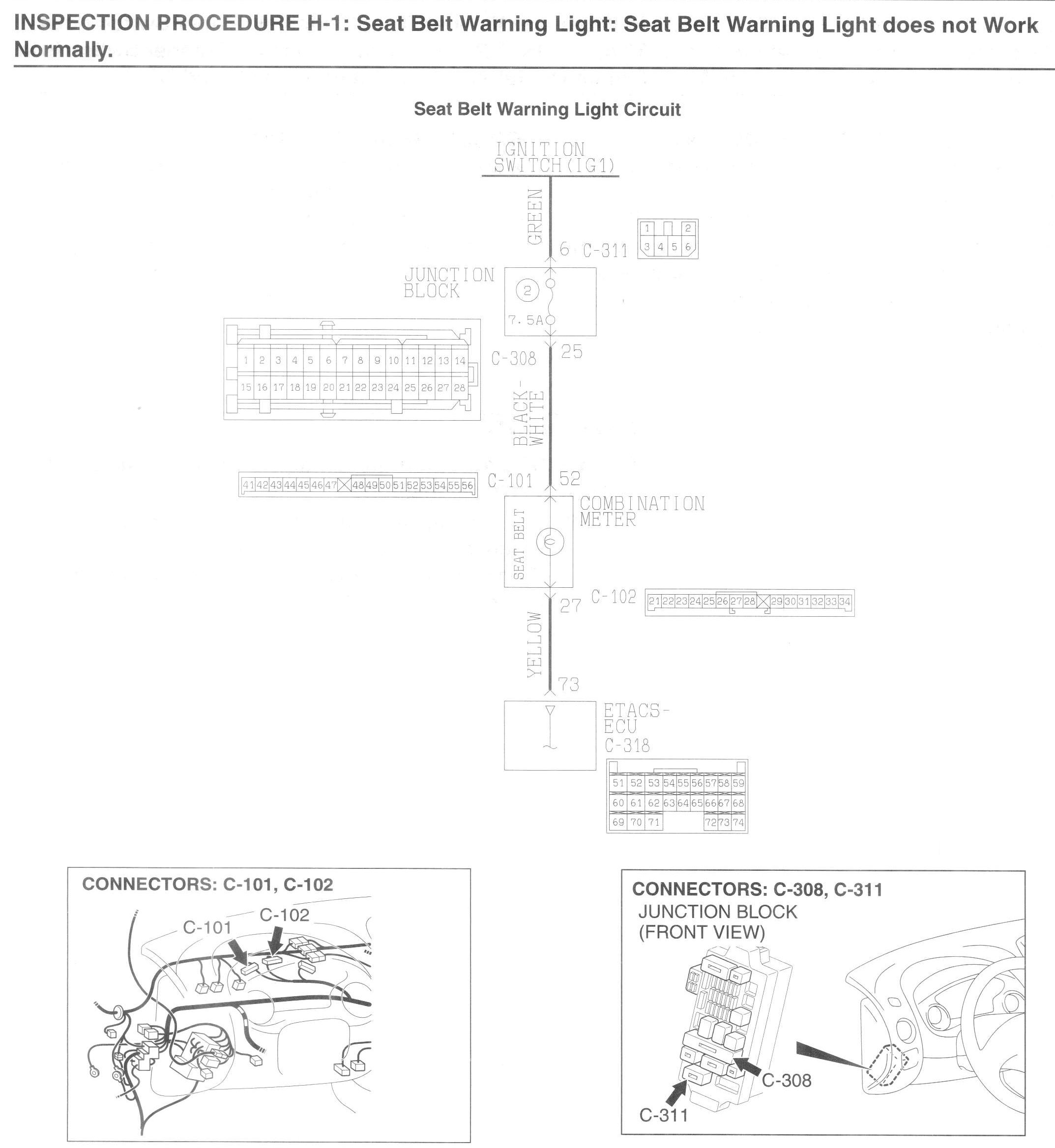 INSPECTION PROCEDURE H-1: Seat belt warning light: Seat belt warning light does not work normally.
