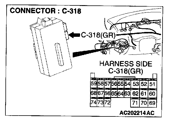 1. Disconnect the ETACS-ECU connector C-318 and measure at the wiring harness side.