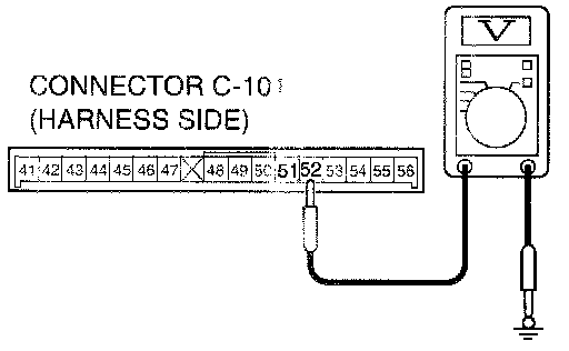 3. Measure the voltage between C-101 terminal 52 and ground.
