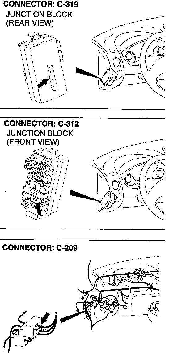 NOTE: After checking junction block connector C-312 and intermediate connector C-209, check the wires. If junction block connector C-312 and intermediate connector C-209 are damaged, repair or replace them. Refer to Harness Connector Inspection. Diagnostic Aids