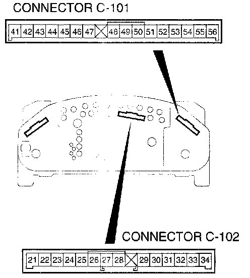 STEP 6. Check the combination meter connector C-102 for loose, corroded or damaged terminals, or terminals pushed back in the connector.
