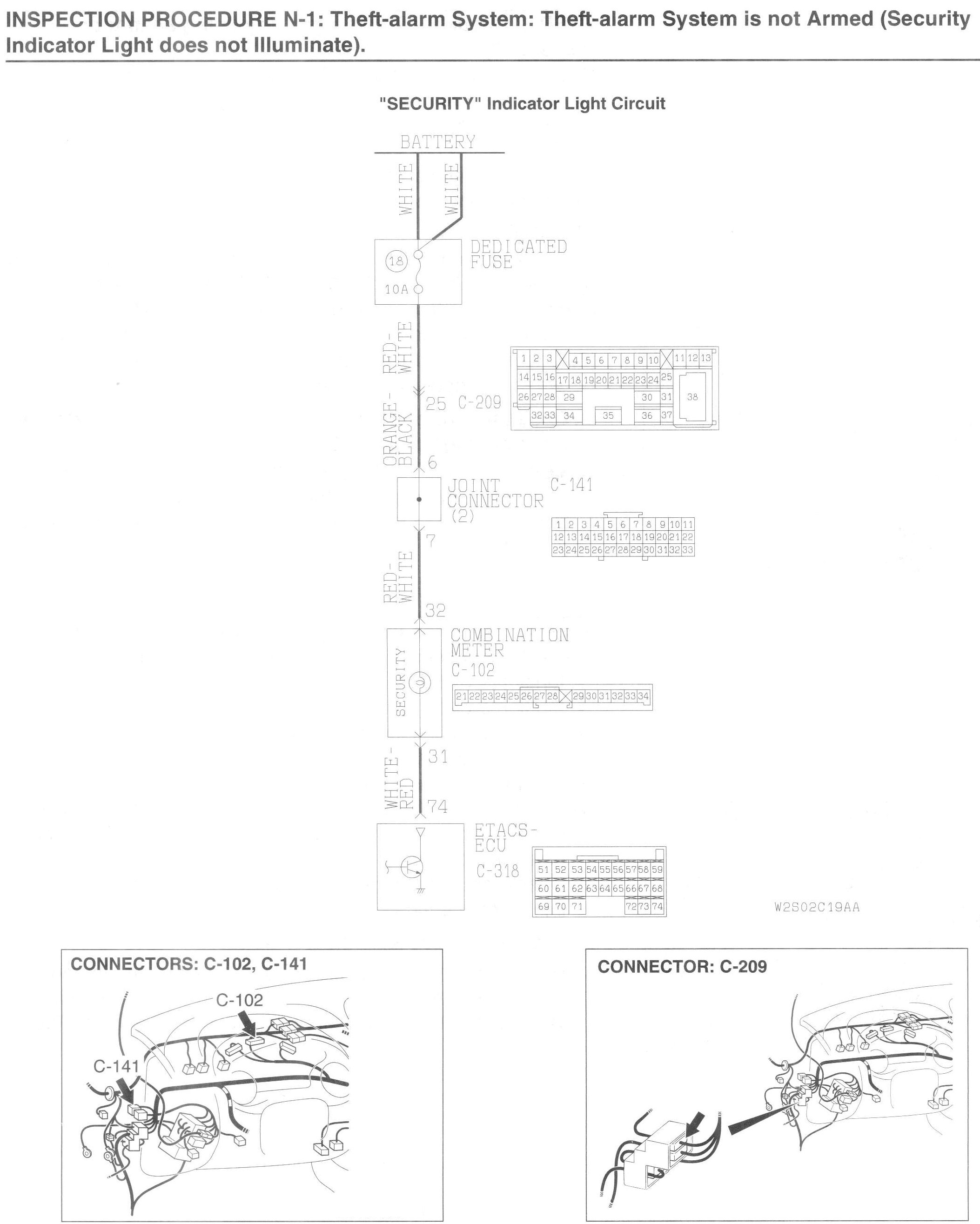 If the theft-alarm system is armed normally, the relevant input signal circuit(s), the theft-alarm indicator light or the ETACS-ECU may be defective.