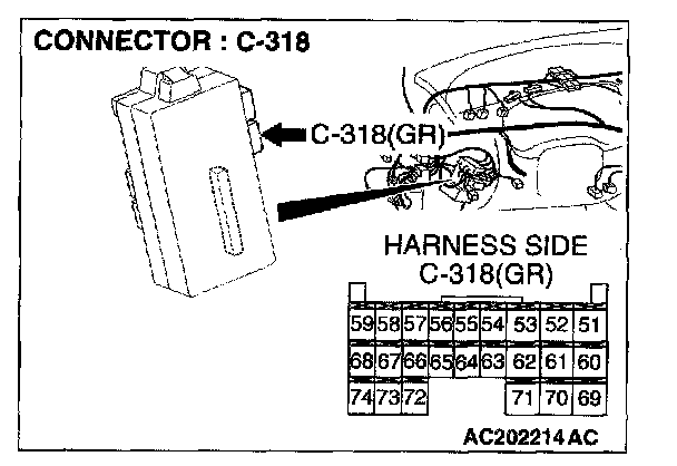 1. Disconnect the ETACS-ECU connector C-318 and measure at the wiring harness side.