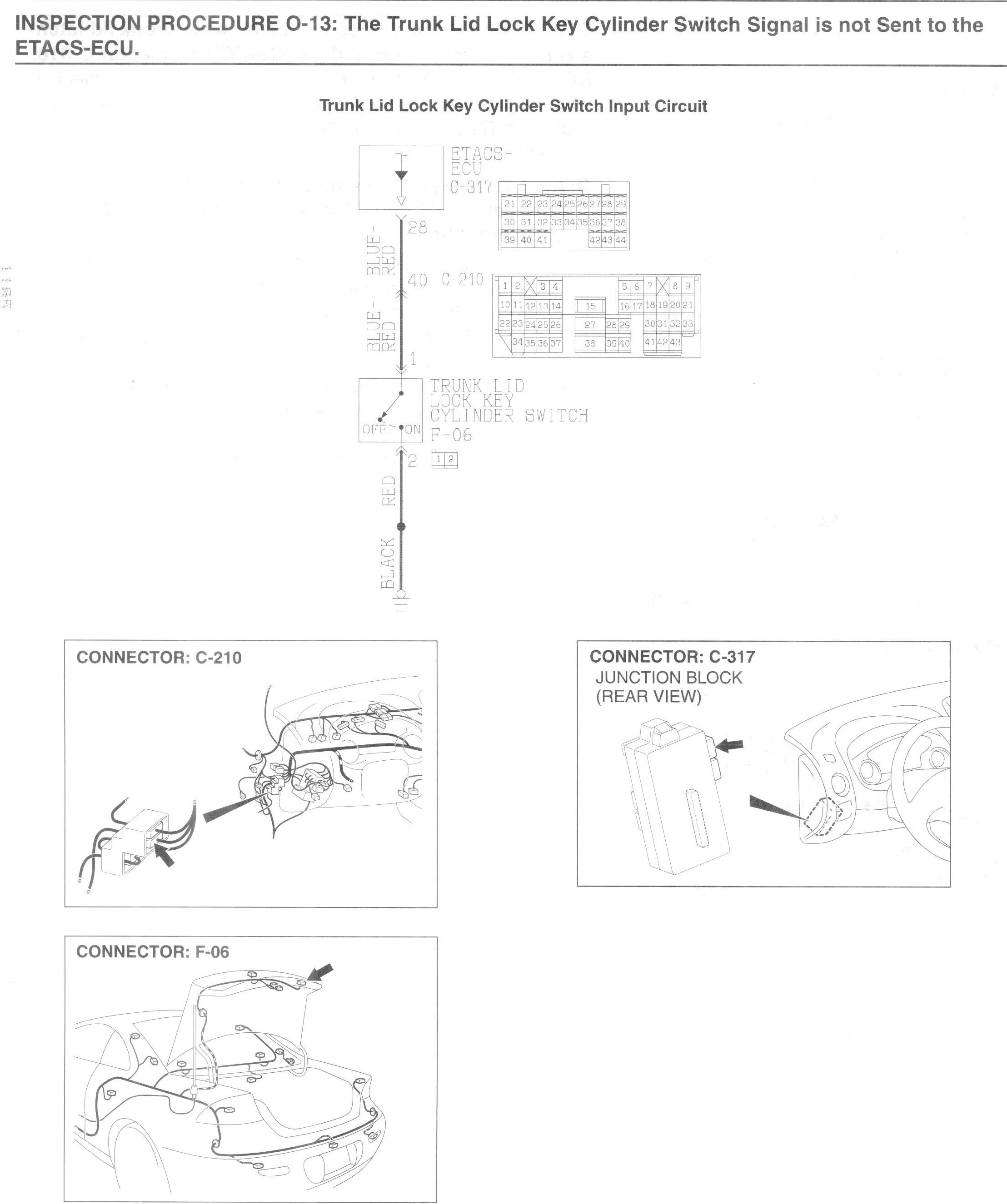 INSPECTION PROCEDURE O-13: The trunk lid lock cylinder switch signal is not sent to the ETACS-ECU.