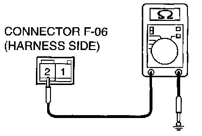 1. Disconnect trunk lid lock key cylinder switch connector F-06 and measure the resistance available at the wiring harness side of the connector.