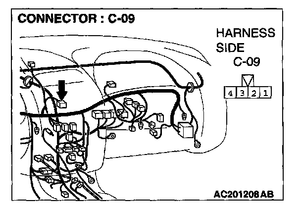 STEP 4. Check the wiring harness between hazard warning light switch connector C-09 (terminal 2 and ground.