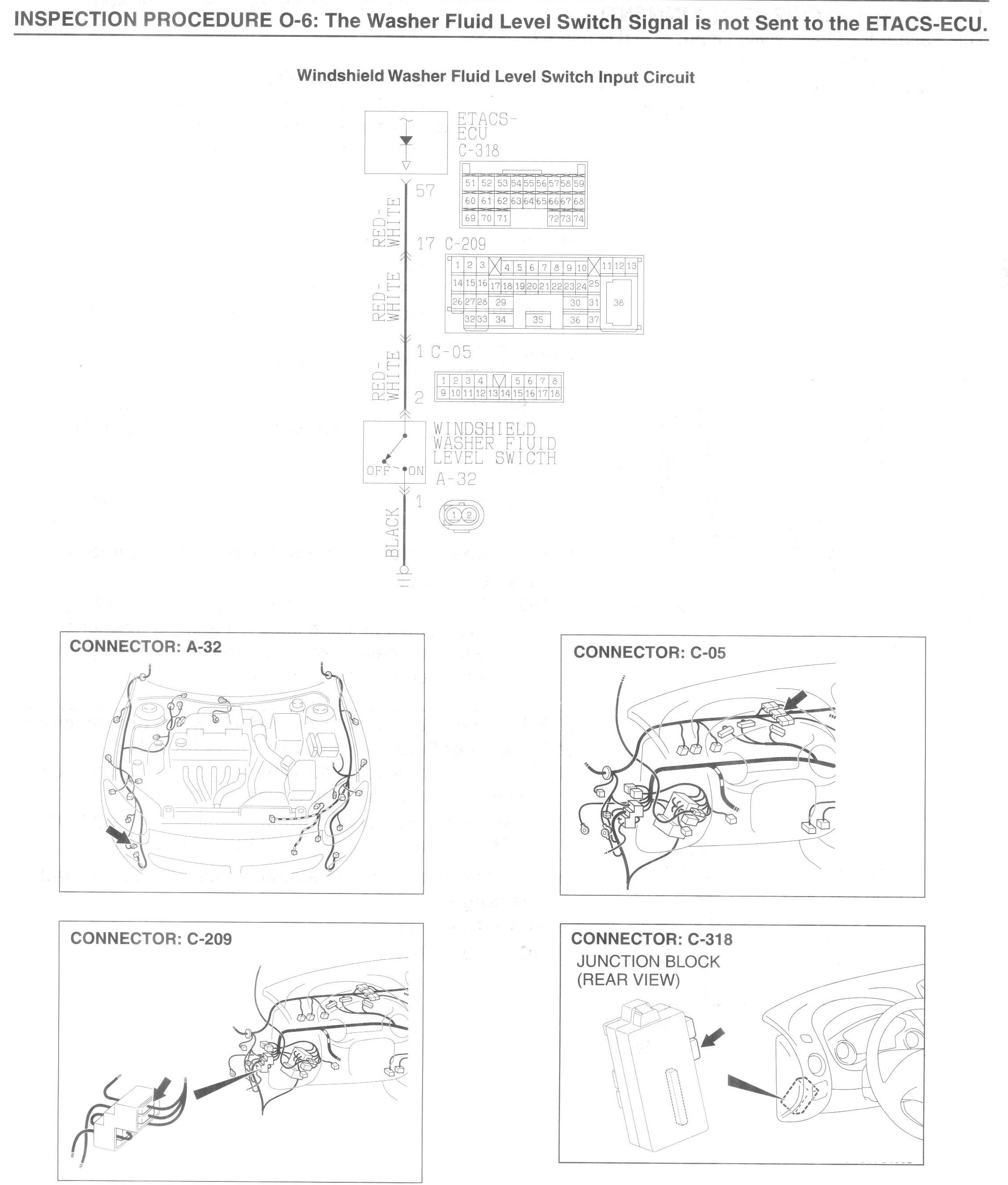 Q: Are washer fluid level switch connector A-32 and ETACS-ECU connector C-318 in good condition?