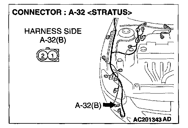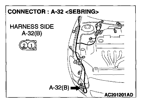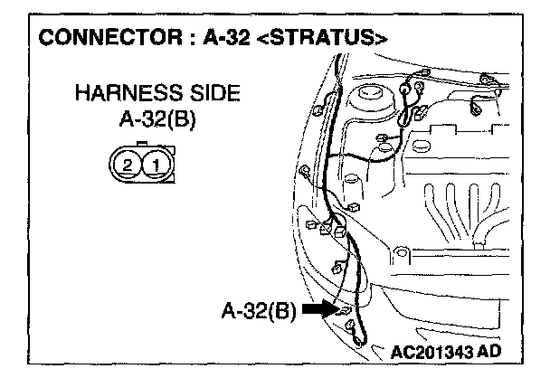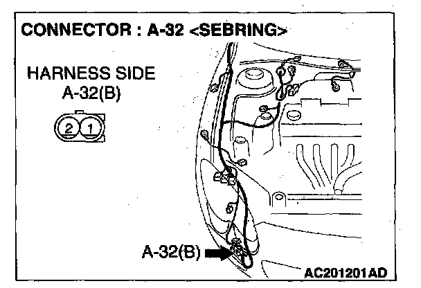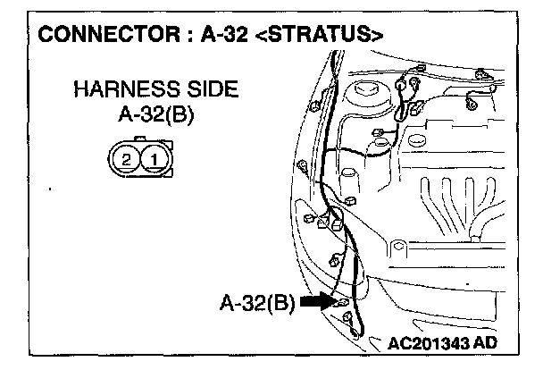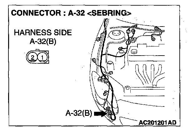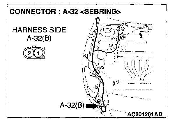 STEP 3. Check the washer fluid level switch connector A-32 for loose, corroded or damaged terminals, or terminals pushed back in the connector.