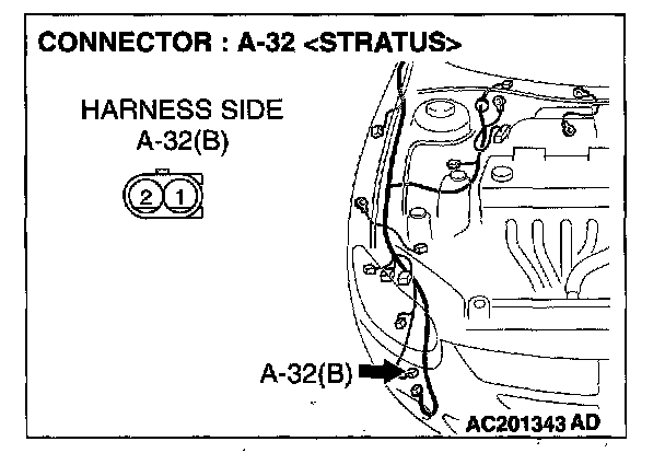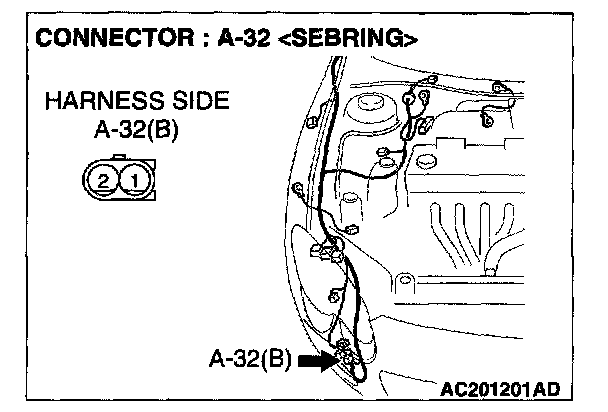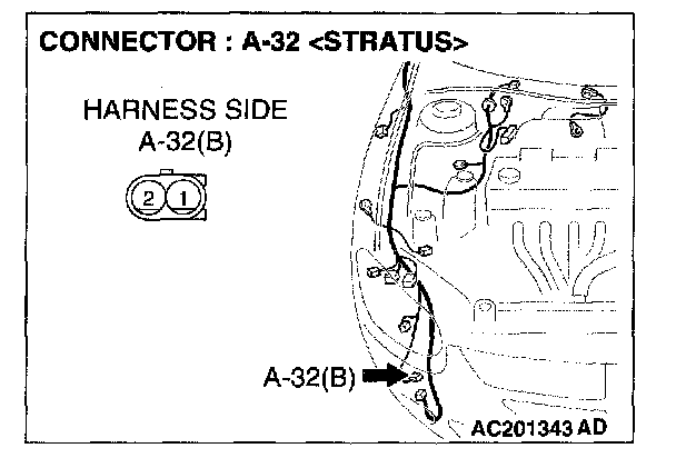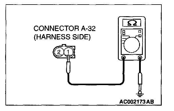 STEP 4. Check the wiring harness between washer fluid level switch connector A-32 (terminal 1) and ground.