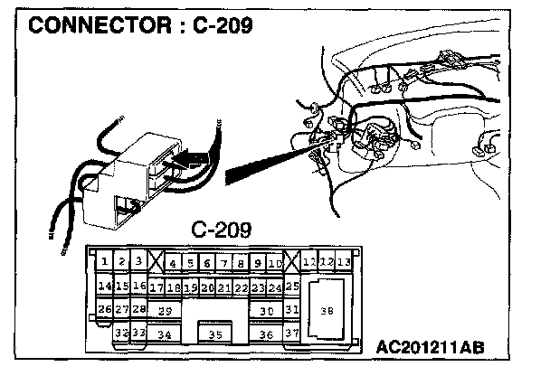 NOTE: Also check intermediate connectors C-05 and C-209 for loose, corroded, or damaged terminals, or terminals pushed back in the connector. If intermediate connectors C-05 or C-209 are damaged, repair or replace the damaged components) as described in Harness Connector Inspection.