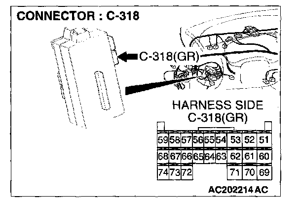 STEP 2. Check the wiring harness from ETACS-ECU connector C-318 (terminal 59) to column switch connector C-203 (terminal 3), front-ECU