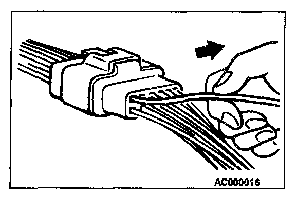 2. If the connector is disconnected for checking and the facing part is the female pin side, the harness for checking the contact pressure of connector pins (MB991219) should be used.