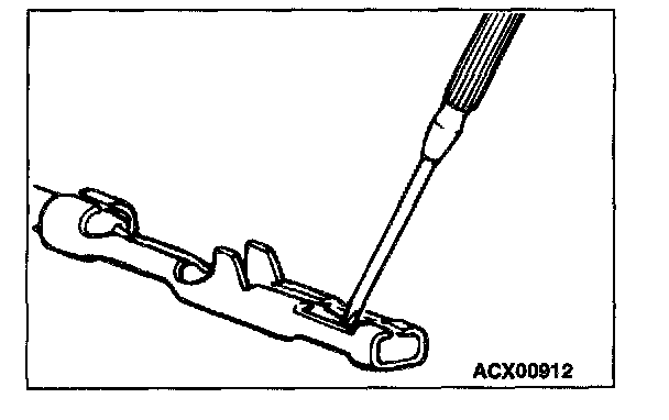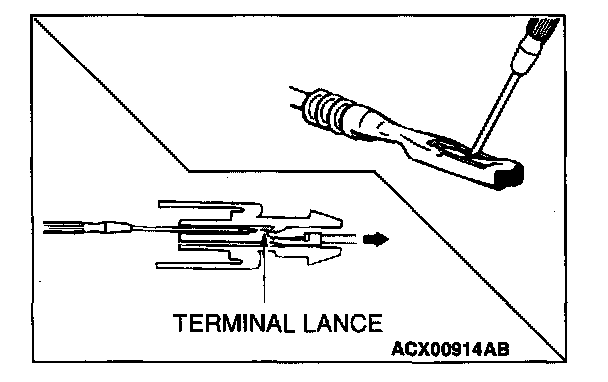 Loosely engaged terminals can be repaired by removing the female terminal from the connector housing and raising its lance to establish better engagement. Removal of the connector terminal used for MFI and INVECS-II A/T control circuit can be done in the following manner.