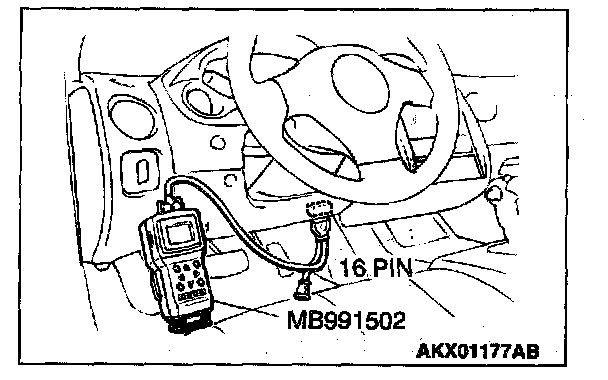 1. Connect scan tool MB991502 to the data link connector.