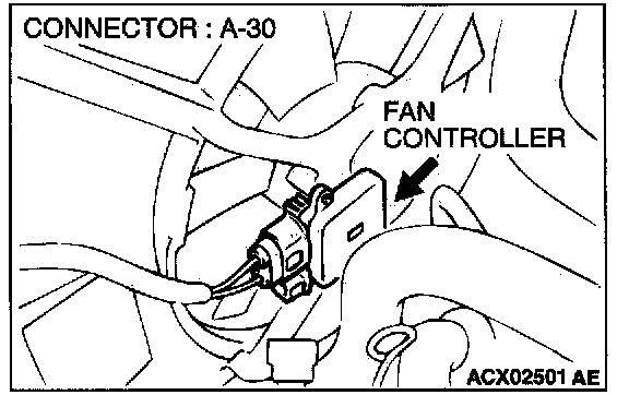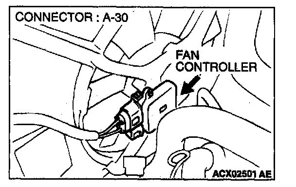 The PCM sends a duty signal to the fan controller according to engine coolant temperature, vehicle speed, and the condition of the A/C switch. (The closer the average voltage at the terminal comes to five volts, the higher the fan speed becomes).