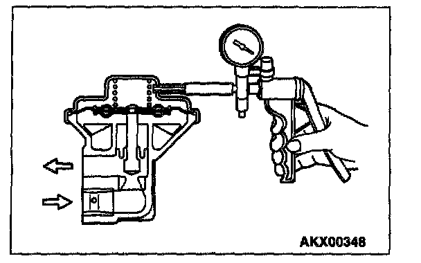 1. Remove the EGR valve and inspect for sticking, carbon deposits, etc. If found, clean with a suitable solvent so that the valve seats correctly.2. Connect a hand vacuum pump to the EGR valve.