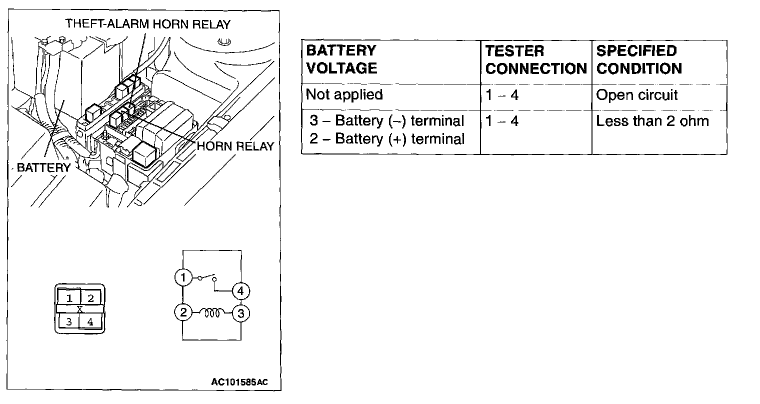 Horn Relay, Theft-Alarm Horn Relay Continuity Check: