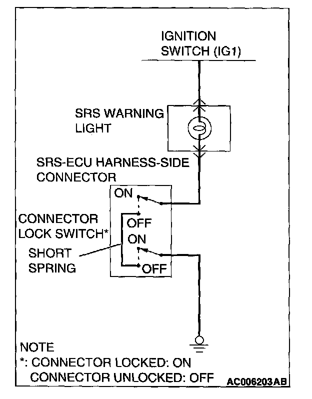 The switch is a mechanism that shorts the power supply terminal to the ground terminal automatically in the warning light circuit when the connector is disconnected. Its structure is similar to the squib circuit connector shorting mechanism.
