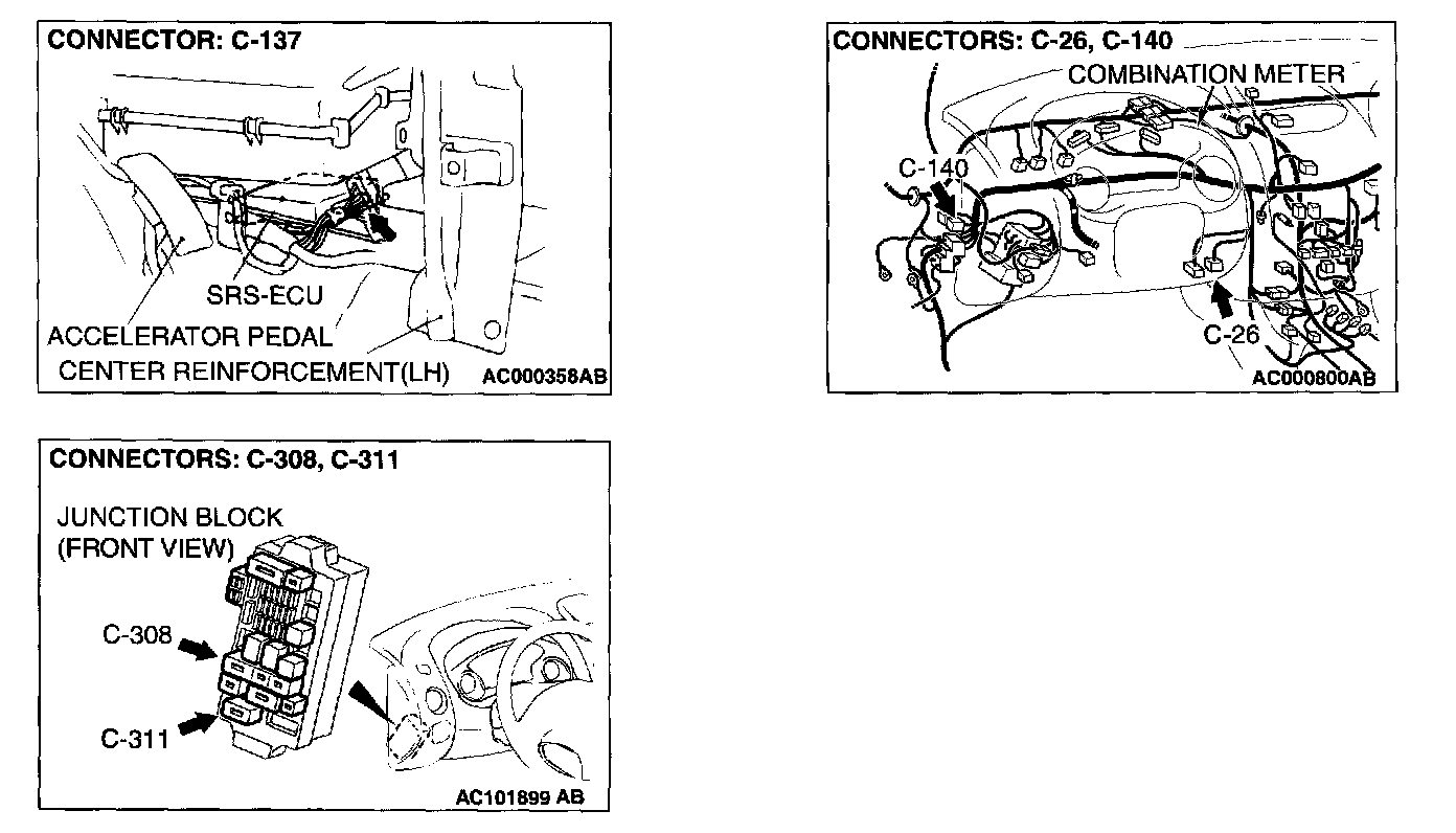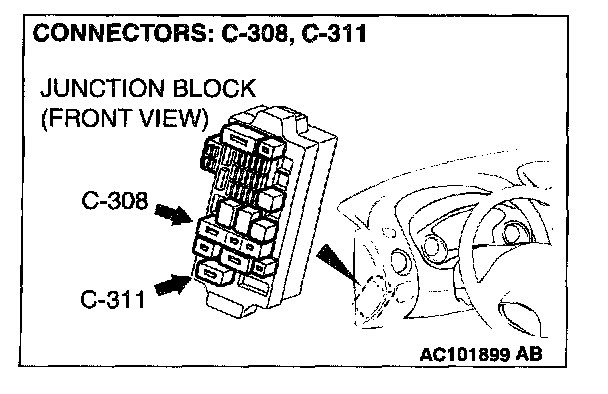 NOTE: After inspecting intermediate connectors C-308, C-311 inspect the wiring harness. If intermediate connectors C-308. C-311 are damaged, repair or replace them. Refer to Harness Connector Inspection. Then go to Step 6.