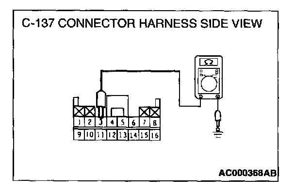 2. Check the continuity between terminal 3 and ground by backprobing.