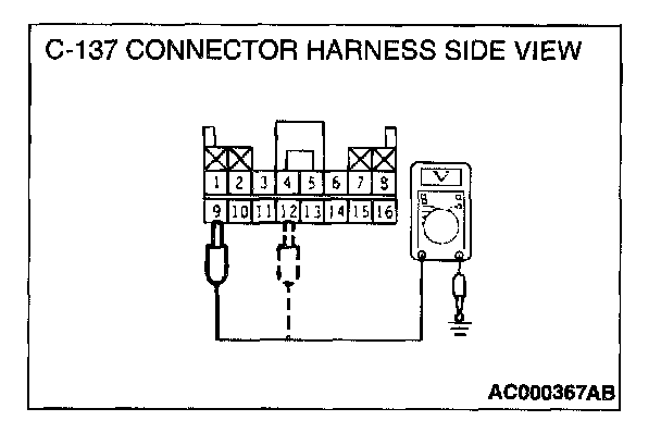 4. Measure the voltage between terminal 12 and ground by backprobing.
