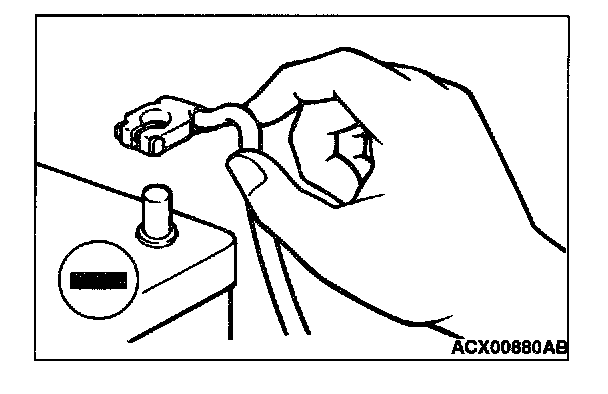 - Before connecting or disconnecting the negative battery cable, be sure to turn the ignition switch to the "LOCK" (OFF) position and turn off the lights. (If this is not done, there is the possibility of semiconductor parts being damaged.)