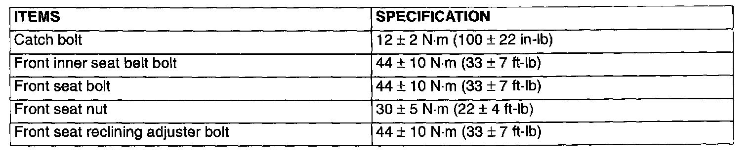 Fastener Tightening Specifications: