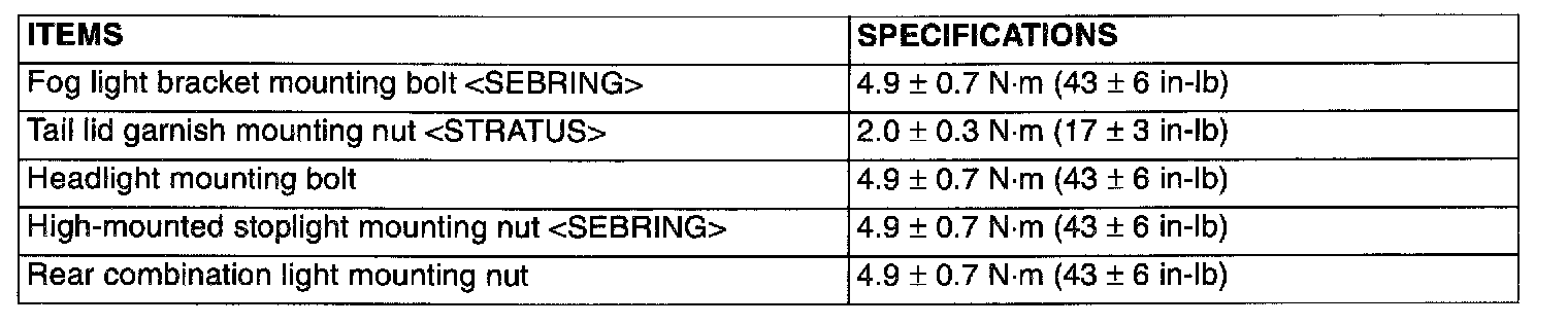 Fastener Tightening Specifications: