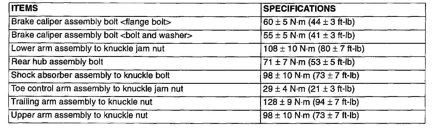 Front SuspensionFastener Tightening Specifications Part 1 of 2